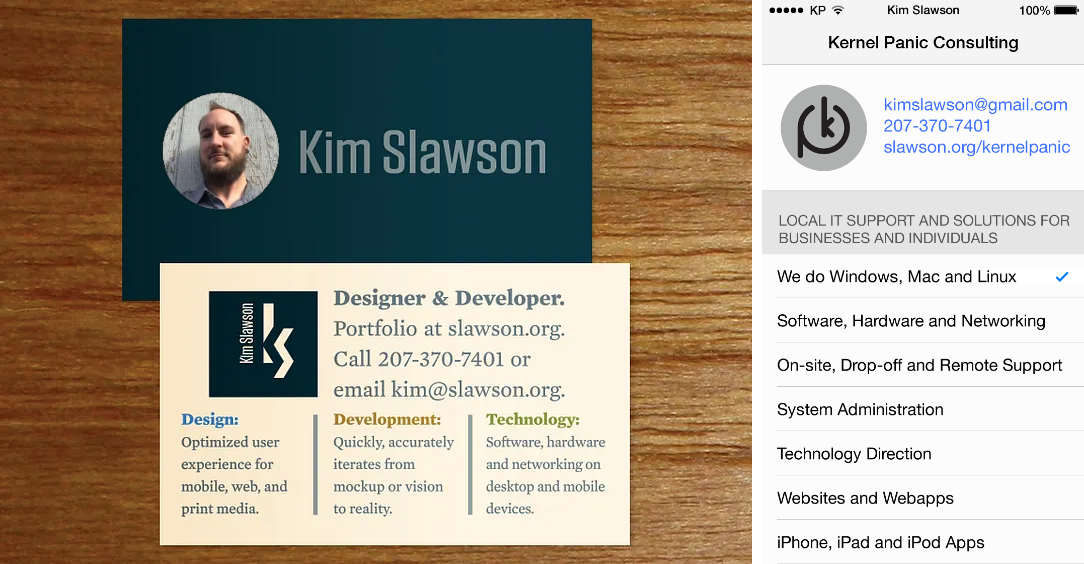 Previously I struggled to represent the dual nature of my services, half design, half technology. This dichotomy led to me making two separate business cards; the better to serve both types of clientele.